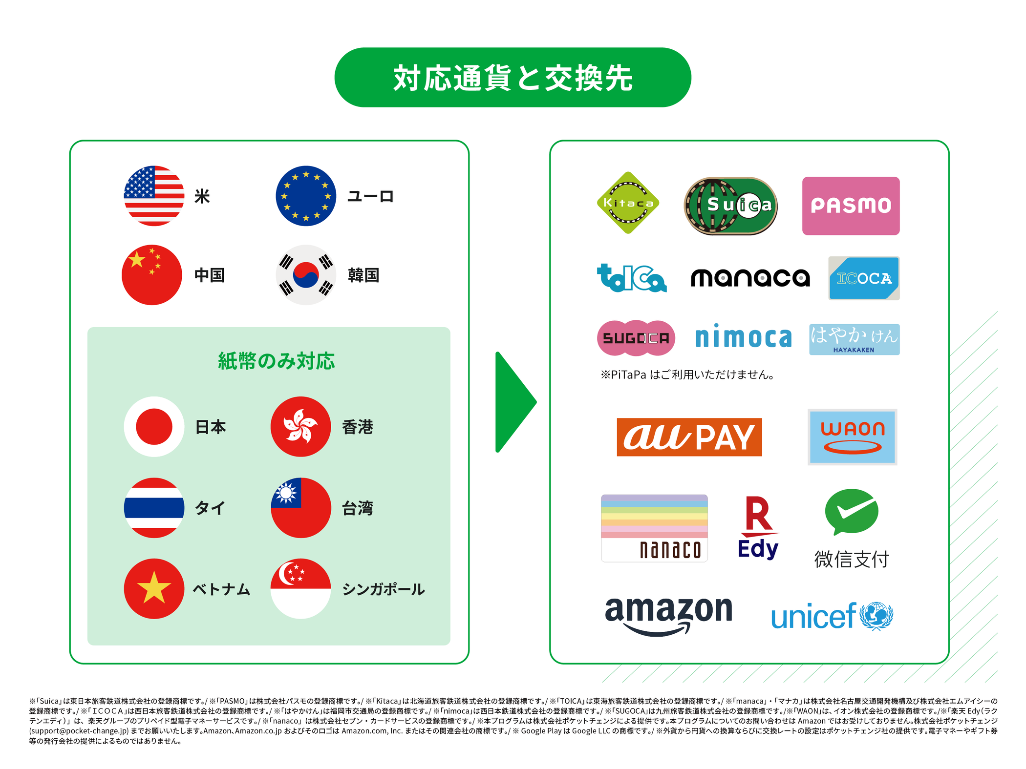 外貨コインを電子マネーにできるのはポケットチェンジだけ(※ポケットチェンジ調べ)