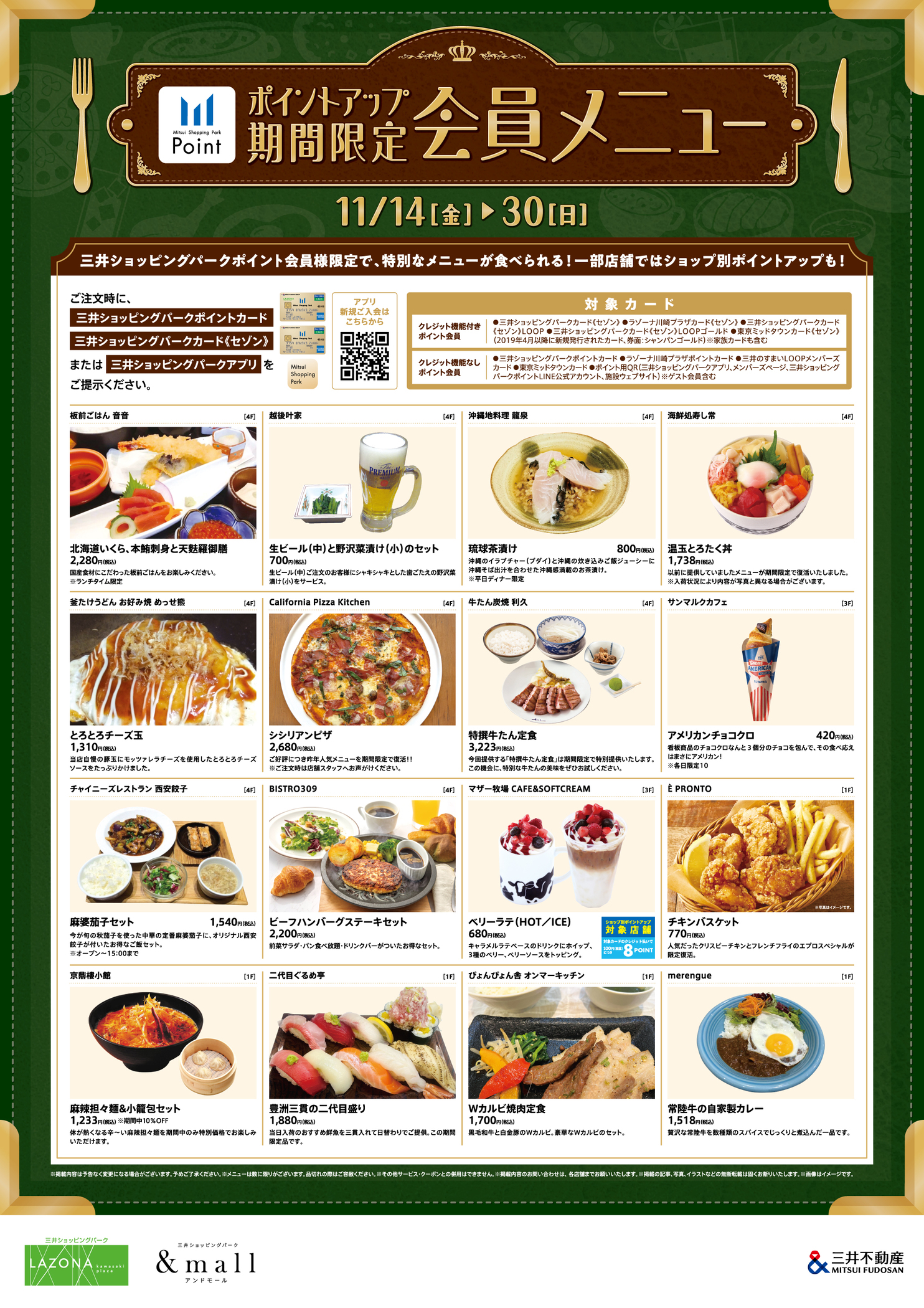 11/14(金)~11/30(日)の期間、三井ショッピングパークポイント会員様限定で、特別メニューを提供いたします!