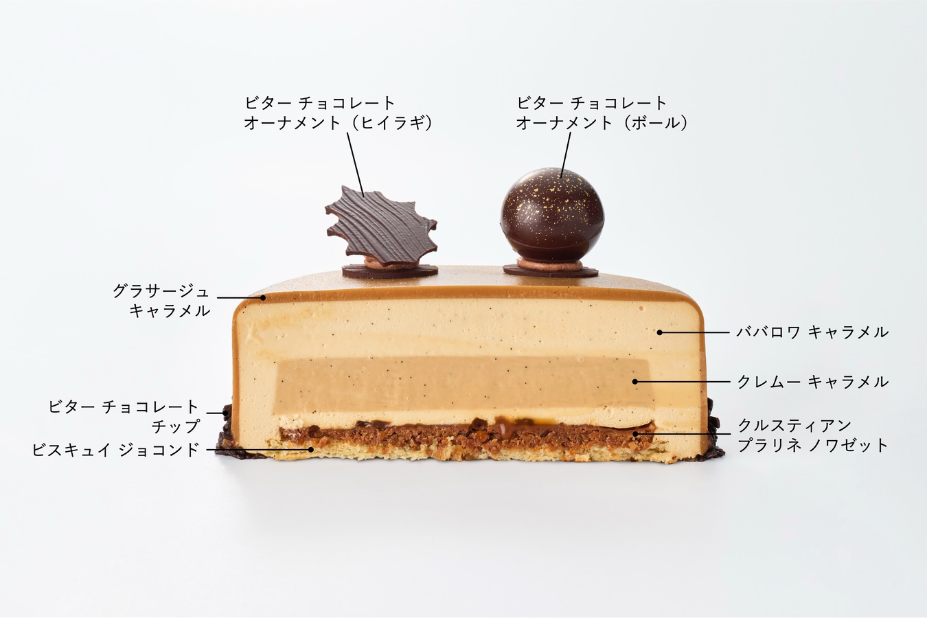 くちどけ滑らかなババロアキャラメルと、濃厚なクレームキャラメルを重ねて仕立てた、クリスマス限定のキャラメルケーキ。