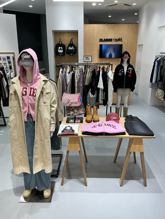 1991年にLAで誕生したメンズストリートウェア「XLARGE(エクストララージ)」と1994年に誕生し時代に合わせた女の子のリアルなストリートスタイルを提案する「X-girl(エックスガール)」によるメンズとウィメンズの複合ショップ。