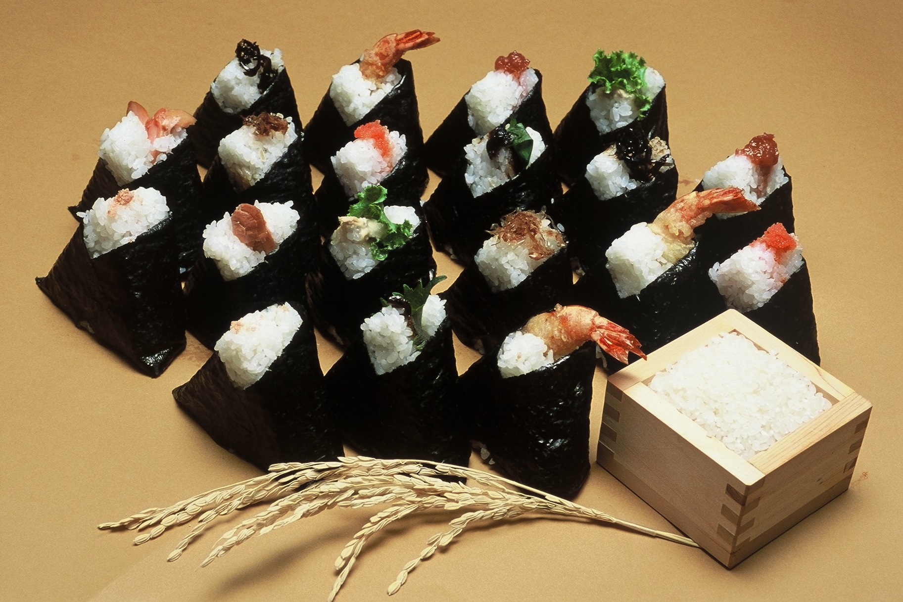 契約農家から直接仕入れ自社定湿定温貯蔵庫で保管し、自社精米工場で精米した「魚沼産こしひかり」を使い、四季折々の食材を入れて有明産の香り豊な海苔で包み込んだおにぎり専門店です。