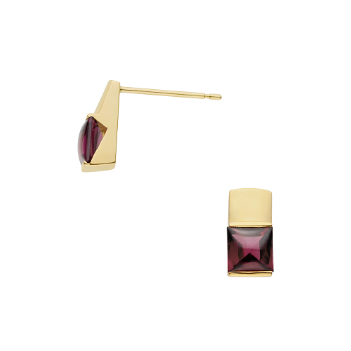 紫色を帯びた深いレッドが印象的な表情を演出するピアス。