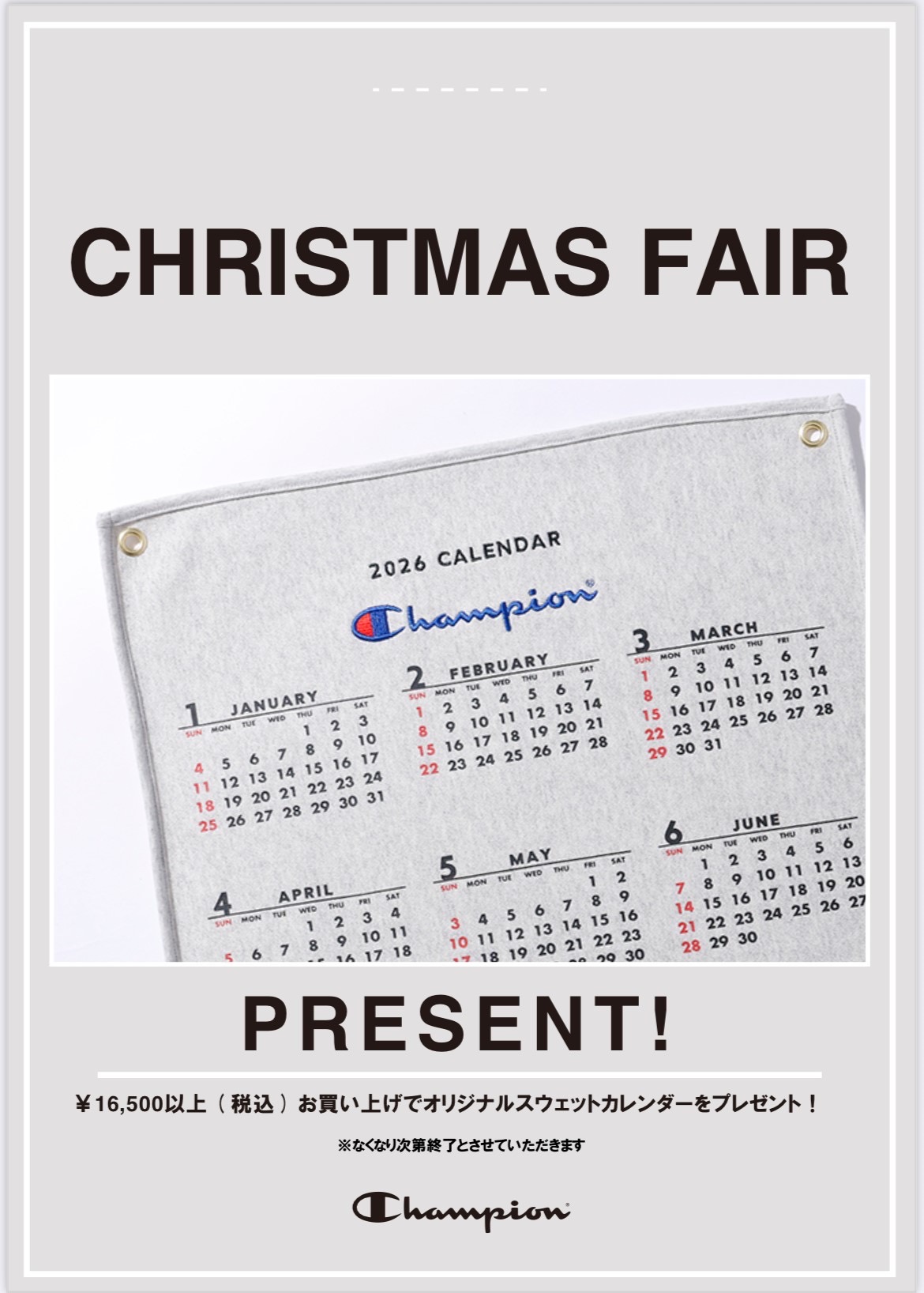 16,500円(税込)以上お買い上げのお客様に「チャンピオン オリジナルスウェットカレンダー」をプレゼントいたします。
