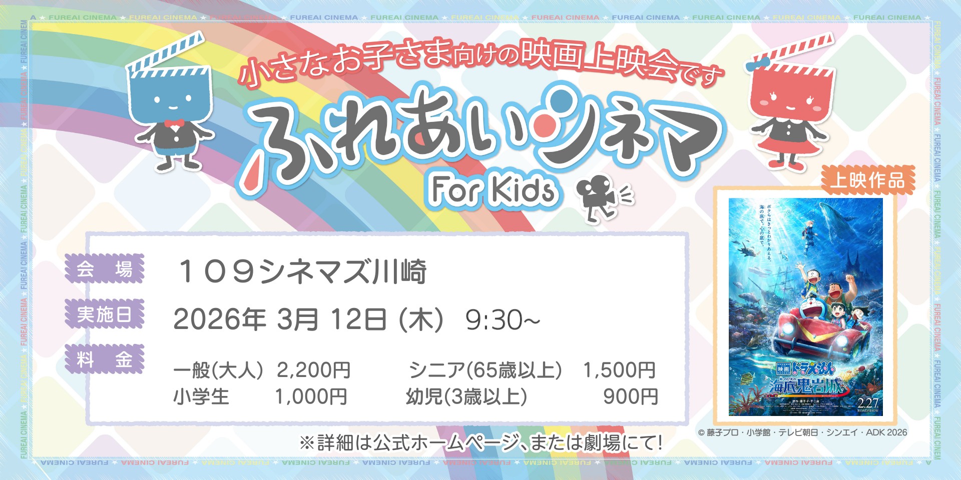 【3/12(木)開催】小さなお子さま向けの映画上映会「ふれあいシネマ」『映画ドラえもん 新・のび太の海底鬼岩城』|109シネマズ | 109CINEMAS