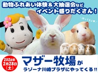 - 花と動物たちのエンターテイメントファーム「マザー牧場」がラゾーナ川崎プラザ(2Fルーファ広場)にやってくる!