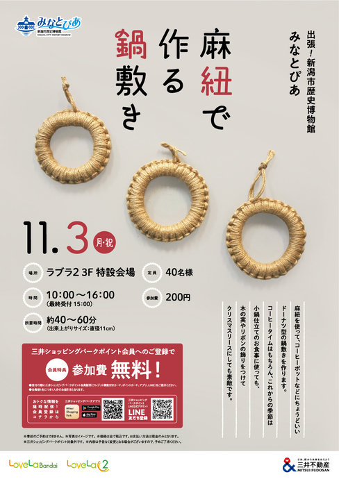 【出張!新潟市歴史博物館 みなとぴあ】麻紐で作る鍋敷き