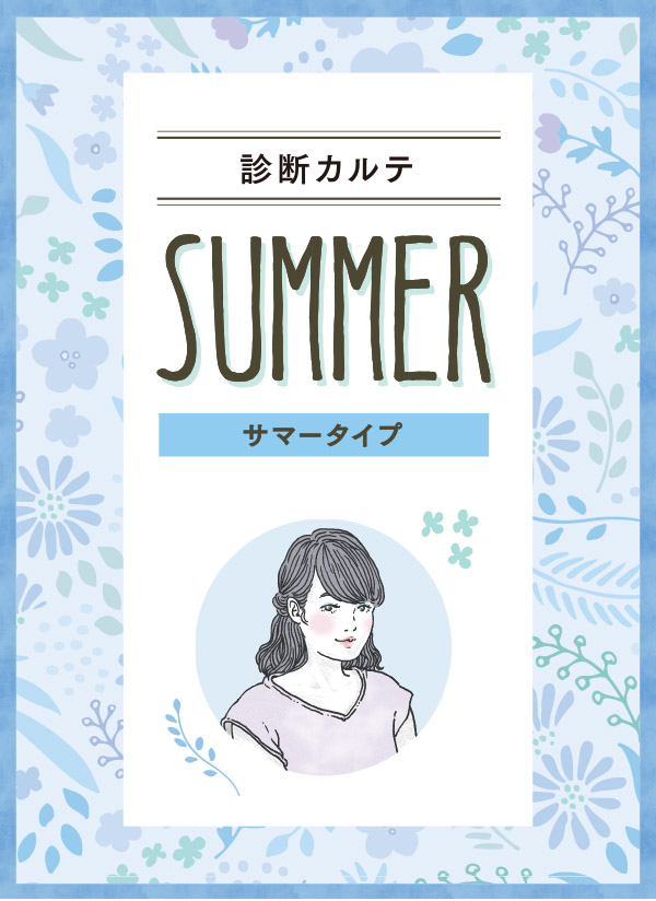 他のタイプには難しい、繊細なニュアンスカラーが似合うサマーさん。濃い色や柄物が苦手なので、無地アイテムで上品・キレイめに♪華奢なシルバーやパールのネックレスでお顔映りもGood。色違いのグレージュのトップスもおすすめです。