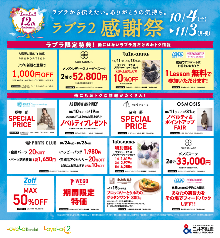 ぜひこの機会にラブラでのお買物をお楽しみください!ご来館をお待ちしております。