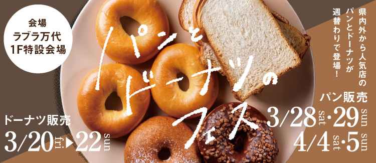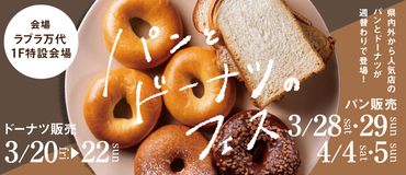 前回に続き、ラブラ万代を会場に、県内外の人気のパンとドーナツが一同に集まります。