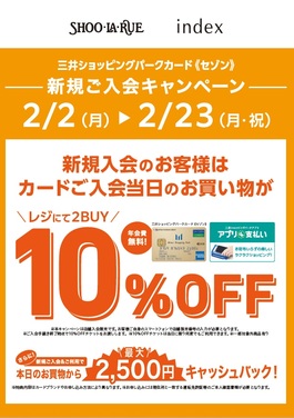 「インデックス」「シューラルー」三井ショッピングパークカード《セゾン》新規入会で、レジにて2BUY 10%OFF!
