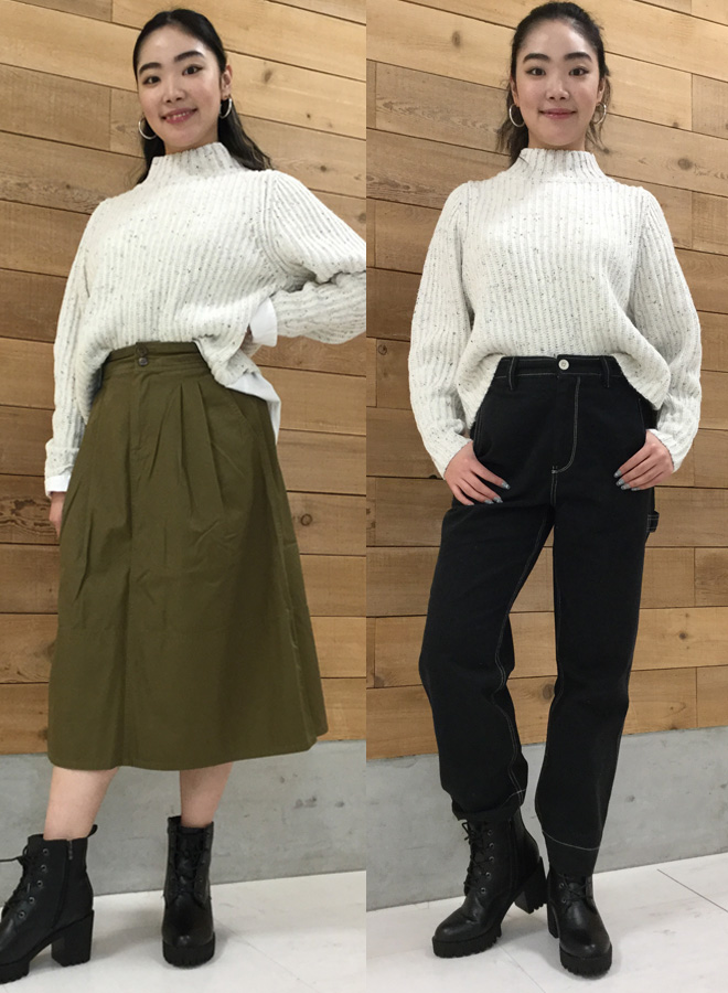 ★リブモックセーター ¥3,990/ハイライズミディスカート ¥3,990/ブラックカーペンターデニム ¥4,990
