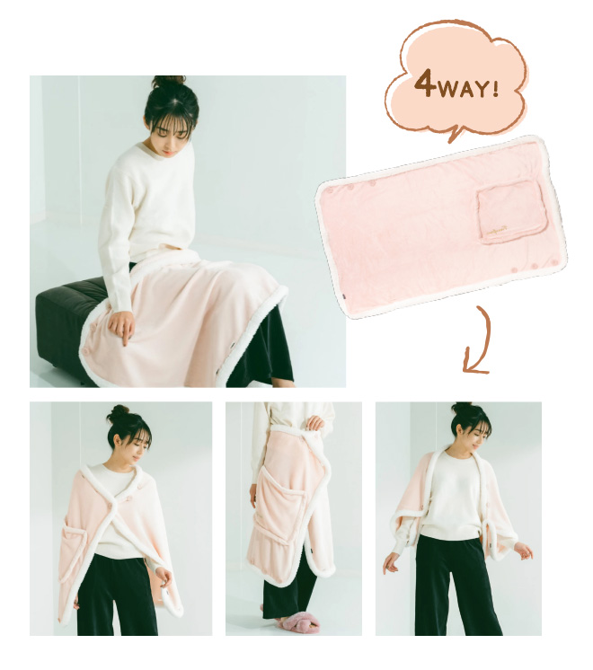 ポンチョ・ボレロ・ブランケット・巻きスカートと、4つの使い方が可能。自宅やオフィスで大活躍。