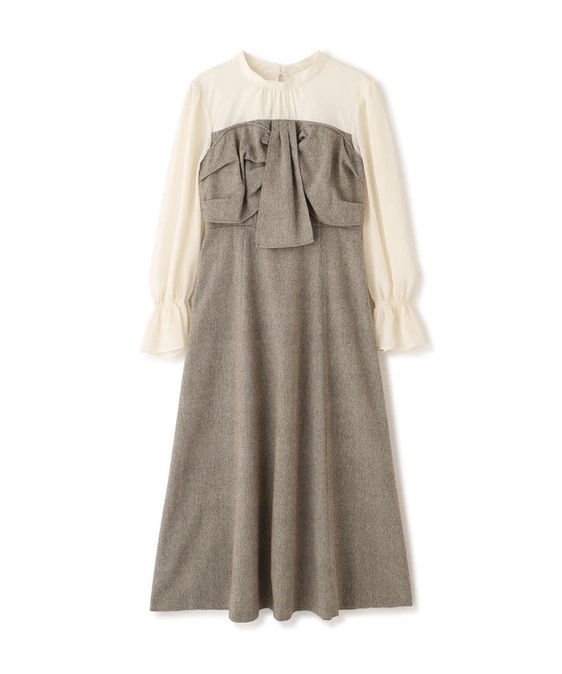 - ♡人気アイテム♡ フロントリボンミックスドッキングワンピース