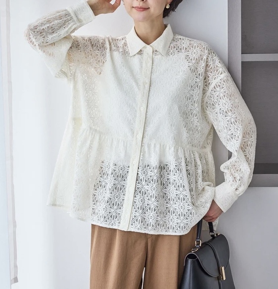 - レースペプラムシャツブラウス