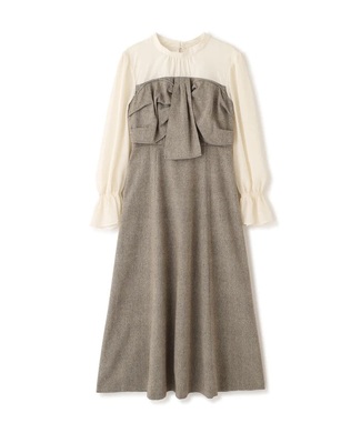 ♡新作♡ フロントリボンミックスドッキングワンピース