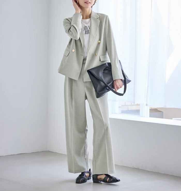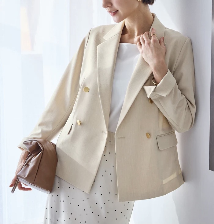 オフィスカジュアルから休日まで着回せる万能ダブルジャケットです!