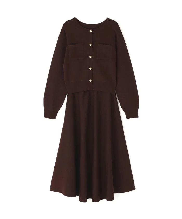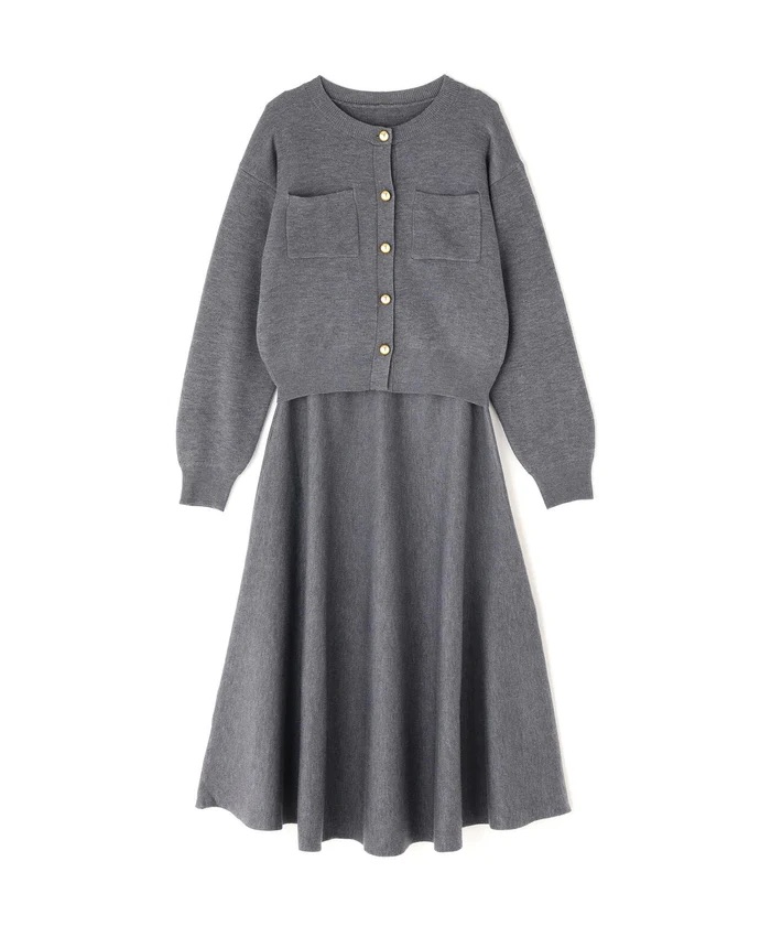 カーディガンは金色ボタンをあしらったデザインで、羽織りとしても活躍します。