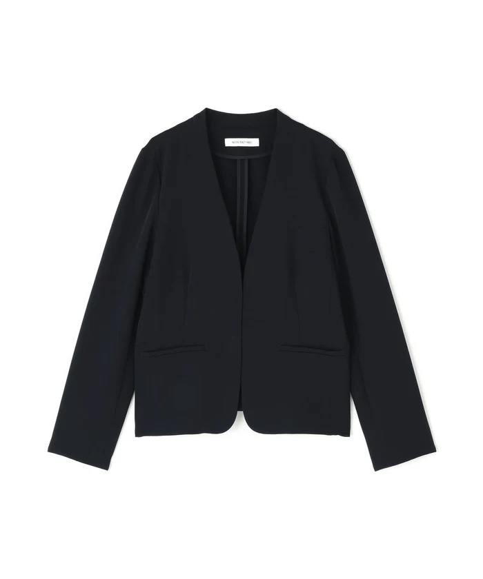 ストレッチの効いた素材で動きやすく、長時間の着用も快適なコンパクトシルエットのノーカラージャケット⭐︎