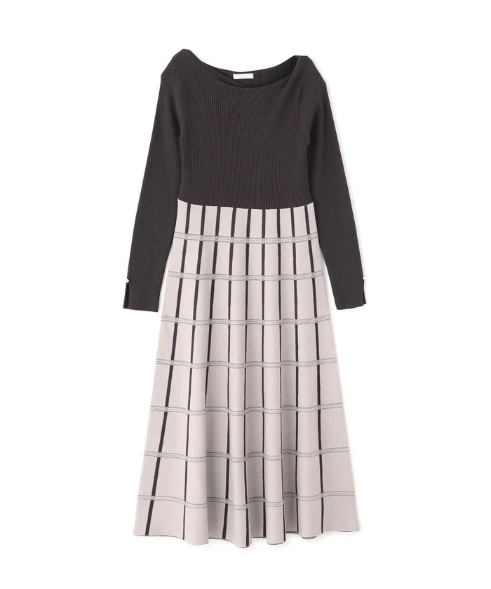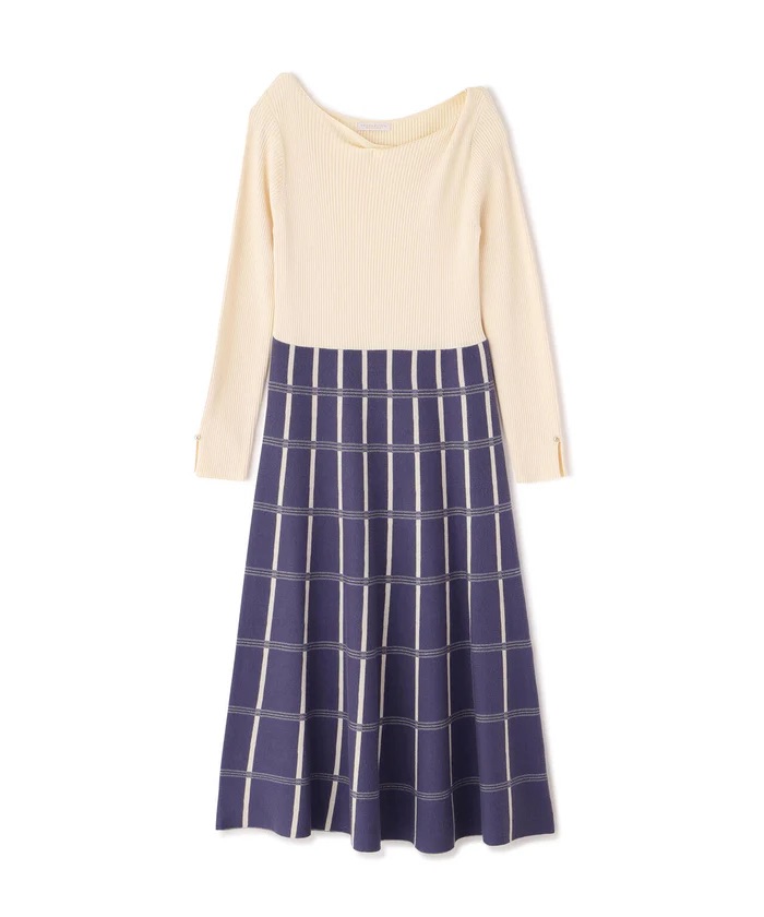 PROPORTIONで人気のニュアンスネックニットに、オリジナルチェック柄のジャガードスカートをドッキングしたニットワンピースです。