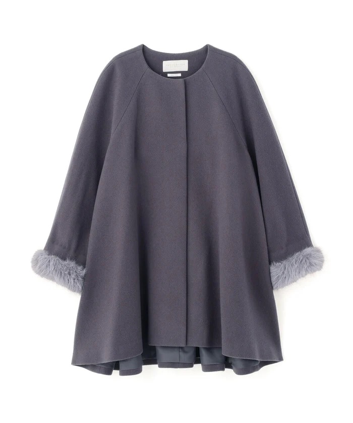 日本の尾州エリアの厳選されたウールを使用。上質な繊維の細かい糸を使用しており、柔らかく、膨らみもある上品なウール混素材です。日本製の生地を使用しています。袖口はフェイクファーを使用。
