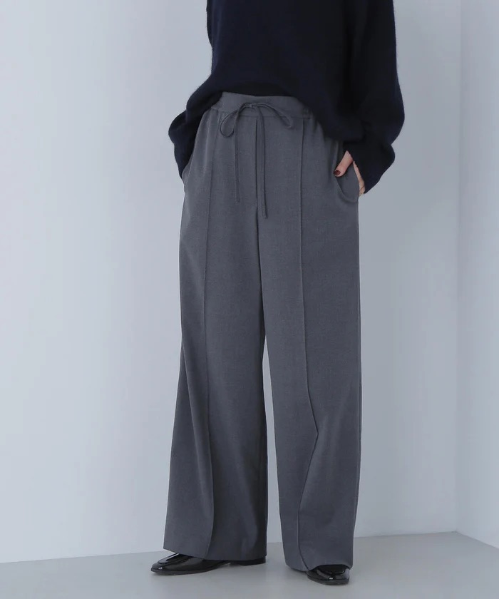 裏起毛素材を使用し、ウエストは脇から後ろにかけてゴムを入れたラクなはき心地。センターラインはつまみのピンタックが入り、ストレートワイドシルエットをキレイに演出。素材とデザインに拘り、リラックスしたはき心地ながらも、オフィスシーンからお出かけまで着回せます♪