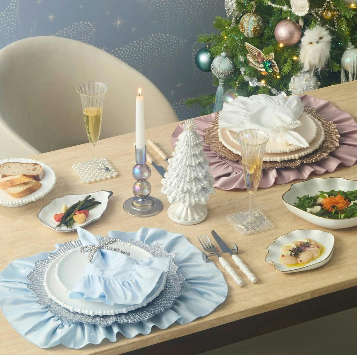エアリーなニュアンスカラーを基調とした、オーナメントなどクリスマスのデコレーションアイテムや、テーブルウェアなど新作を多数ラインアップしております♥