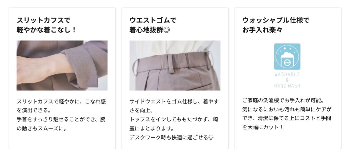 仕立て映えのする発色良い生地でありながら、高ストレッチ、ウォッシャブルと多機能なレディーススーツ。