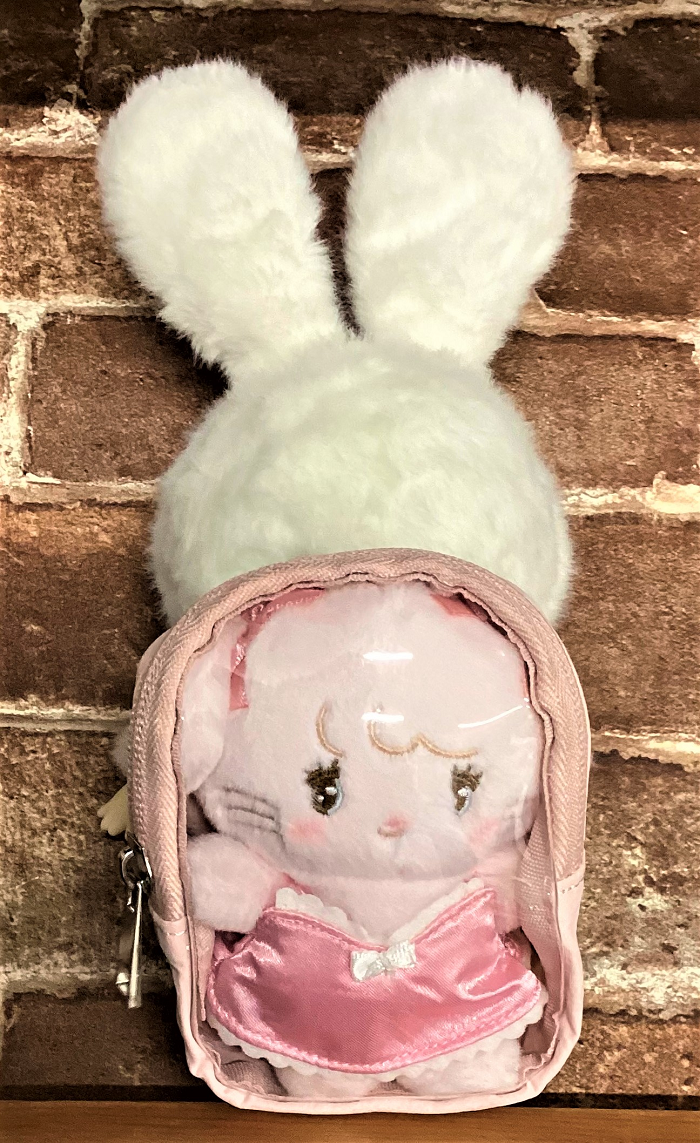 小物をギュッと詰め込んでバッグに付けたり、リュックとしてぬいぐるみ等に背負わせることも出来ます。お好みで選べる2サイズと色はライトピンク・ライトブルー・ライトベージュ・ブラックの4色ご用意しております。アレンジして楽しんでみてください。