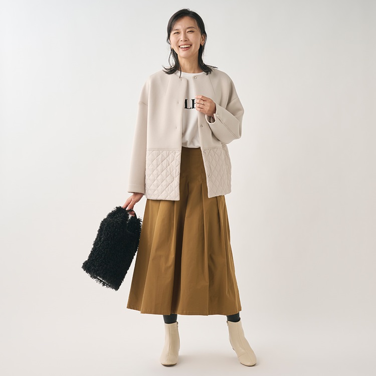 丸みのあるコクーンシルエットで、カジュアルすぎず大人な雰囲気になりますよ。