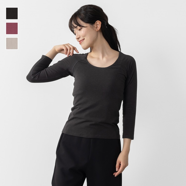 保湿Uネック発熱綿混あたたかインナー8分袖・ 2,189 円(税込)