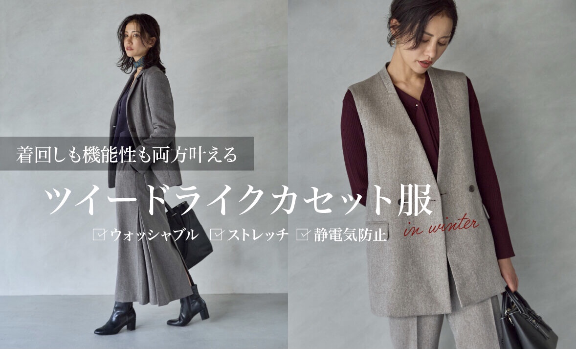 - 【秋冬新作】着回しも機能性も両方叶えるツィードライクカセット服