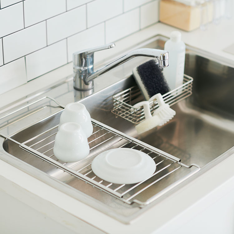 キズつけにくい丈夫な樹脂加工不織布が、水だけでシンク周りの水垢・油汚れをかき取ります。