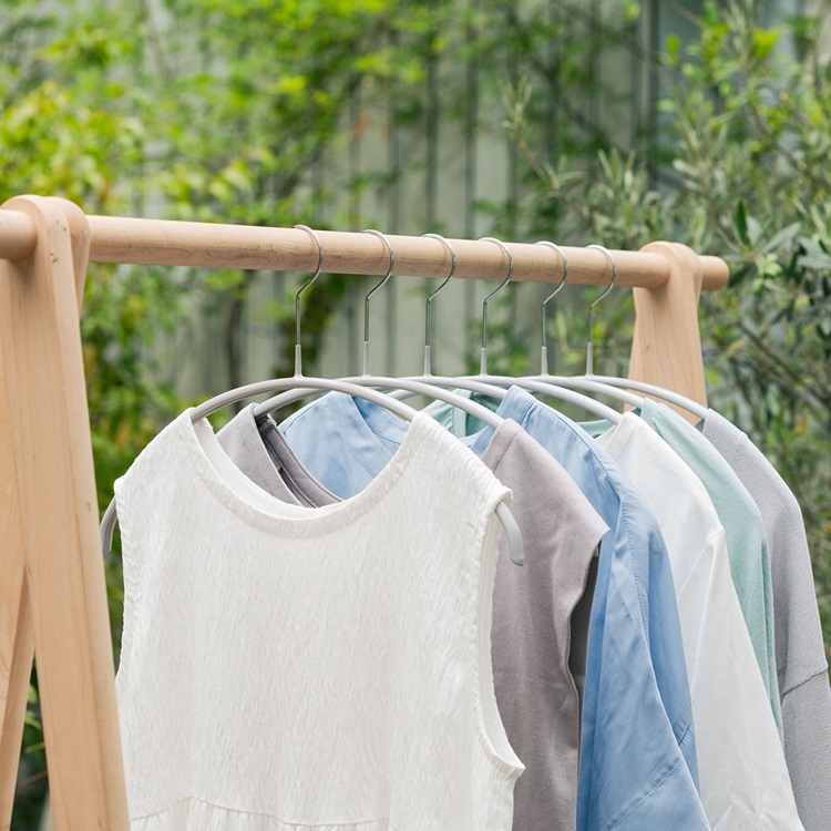 丸みを帯びた肩ラインは通常のハンガーでは肩の出てしまうニットの型崩れ等も防止し、襟の開いたブラウスやキャミソールなど滑りやすい素材のトップスも美しくキープします。