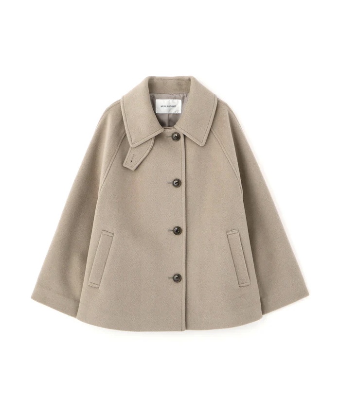 トレンドのステンカラー(襟)がポイントのハーフコート。ラグラン切り替えを入れたゆとりのあるシルエットです。襟を立ち上げてタブを留めると、スタンドネックとしても着用いただけます♡シンプルかつ洗練されたデザインは、通勤スタイルからデイリーまで着回せます♪