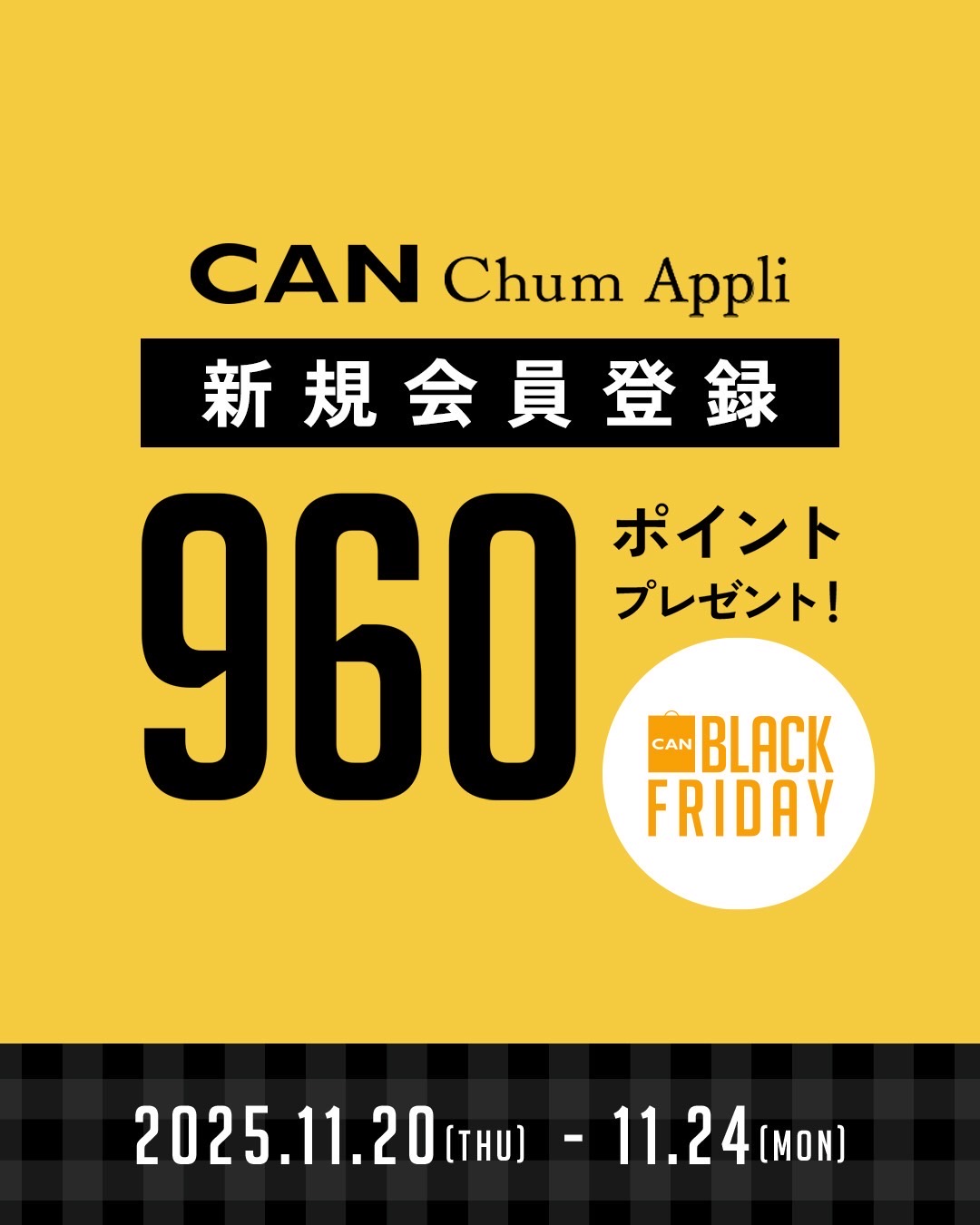 ・CAN chumアプリ新規ご登録で960ポイントプレゼント