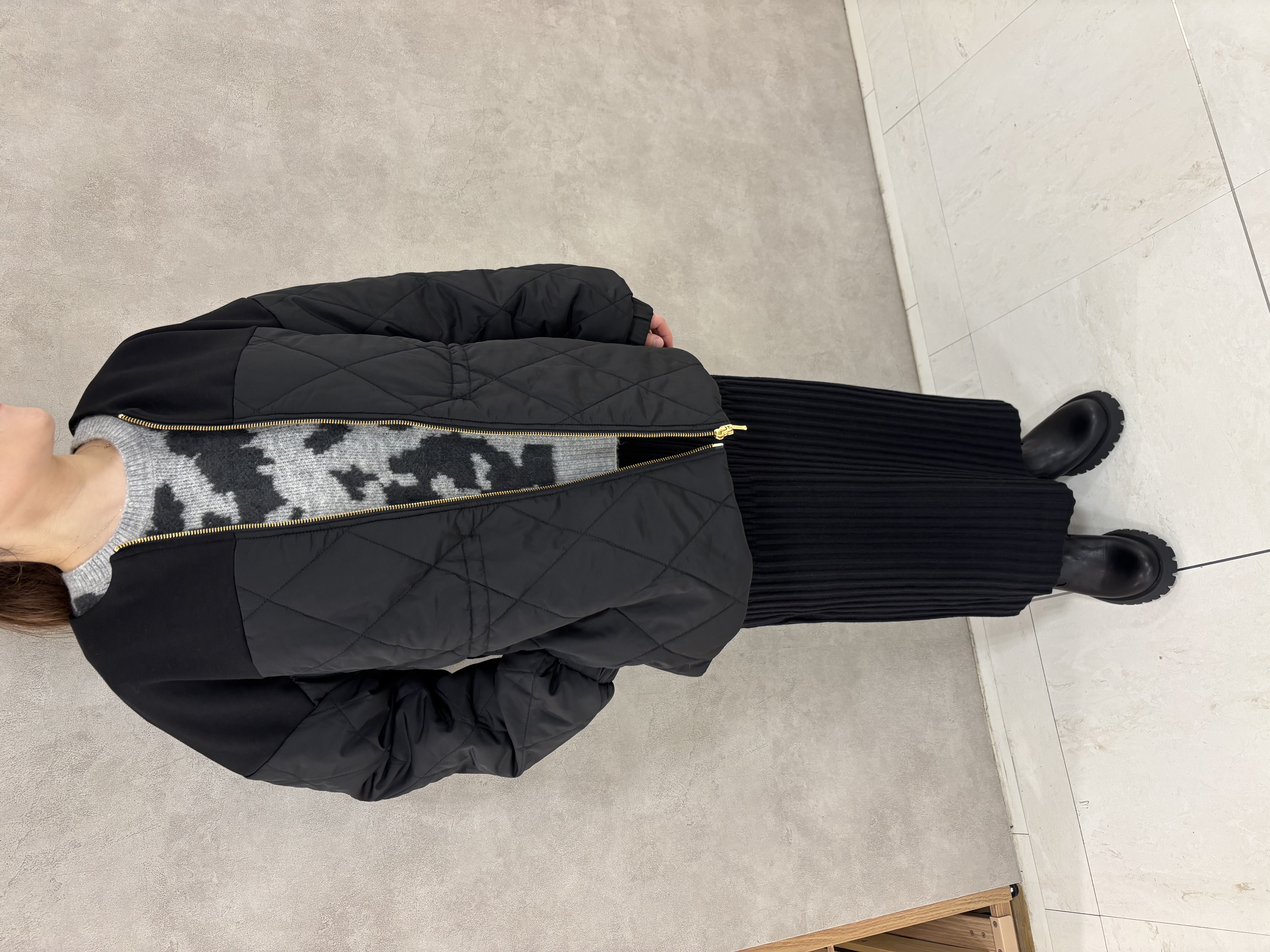 ダンボールとキルティングの異素材アウターはウエストの紐でシルエットが変えれます♪