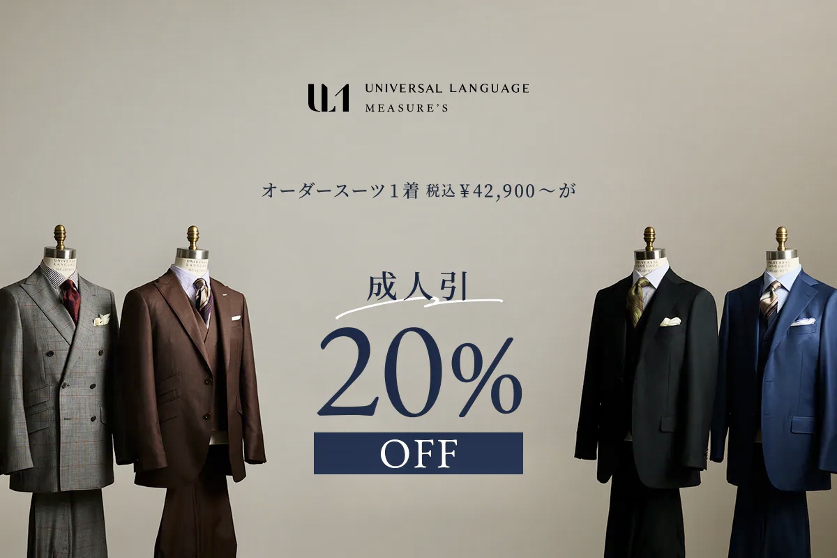 そんな想いからスーツスクエアでは成人式でお召になられるオーダースーツを20%OFFにてお仕立て頂けるキャンペーンを実施中です。