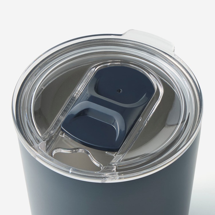 開け閉めしやすいスライド式の飲み口が便利なフタ付きです。