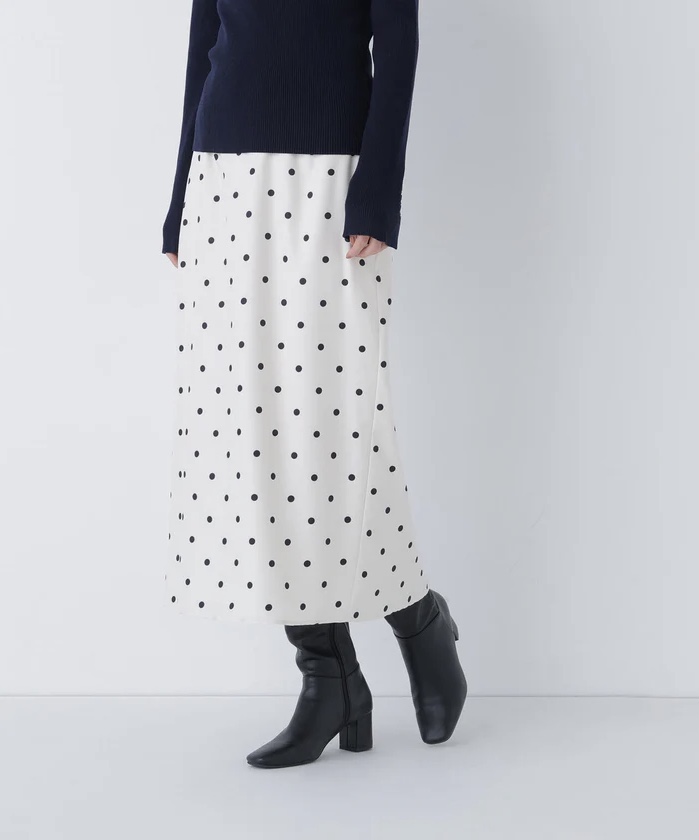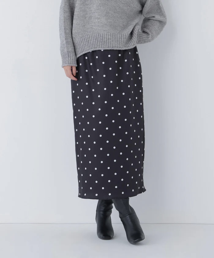 はくだけでトレンド感を演出してくれるポルカドット柄のタイトスカート。スマートなタイトラインが、大人の女性らしさと遊び心のあるスタイリングを楽しめます。ケーブルニットやバイカラーカーディガンを合わせたり、足元はロングブーツもおすすめです♪