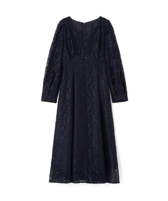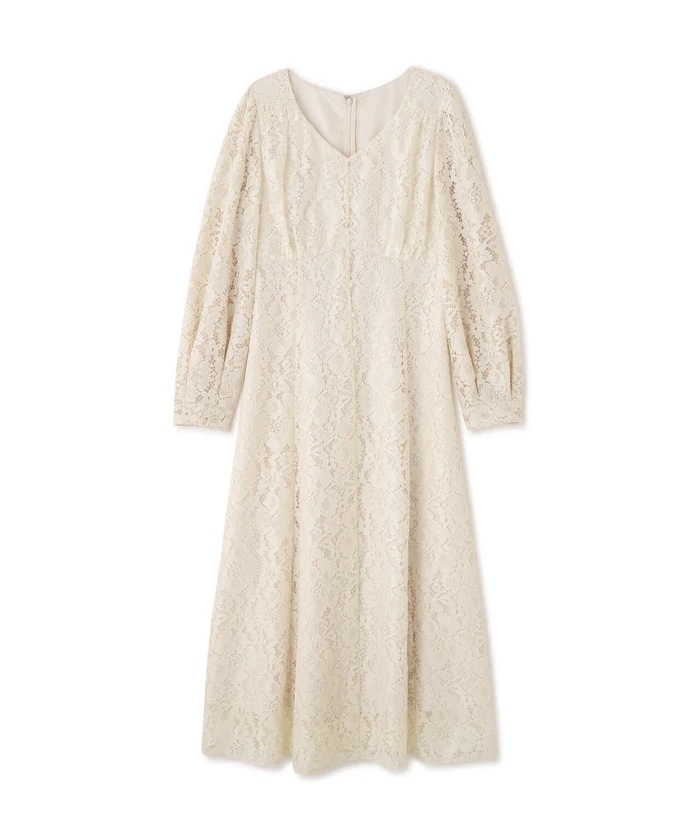 大花柄レースが大人カワイイワンピース。オリジナルパターンで仕上げており、体のラインをキレイに見せながら上品な雰囲気を叶えてくれます。後ろウエストはゴム仕様でフィットしながら細見えと動きやすさを両立しています。