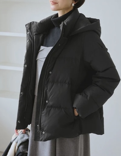 ダウンの分量を考慮し、着膨れのないきれいめなオンオフで使いやすいシンプルなデザインです。
