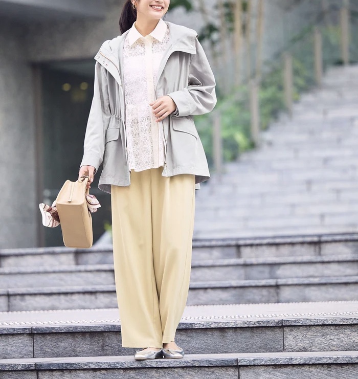 フレアパンツと合わせれば、ボリューム感のバランスが取りやすくなり、小柄な方にも取り入れやすいコーディネートになります!