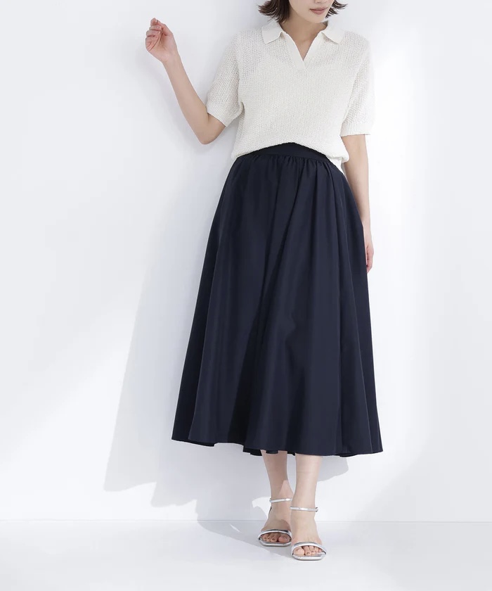 様々なトップスに合わせやすい万能なフレアスカート。