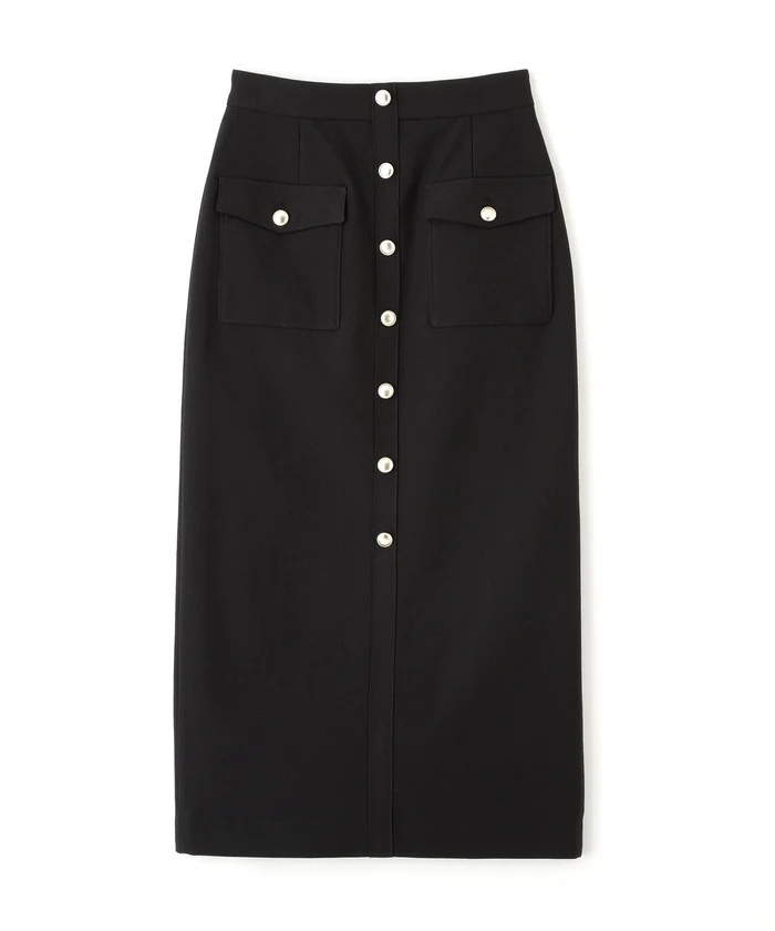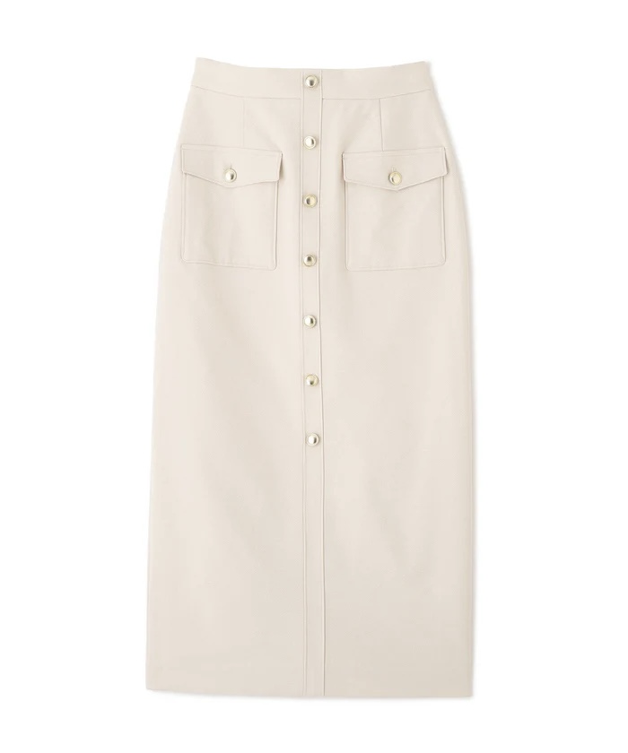 Iラインのナローシルエットが女性らしさを引き立てるスカート。フロントボタンが縦のラインを強調し、すっきり見えを叶えます。フロントボタンは飾りなので安心して着用いただけます♡