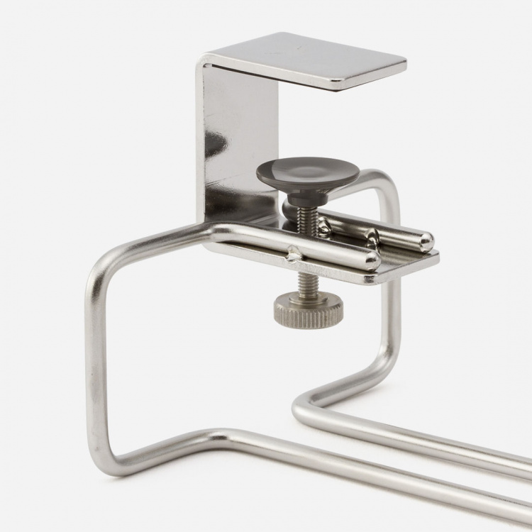 吊り戸棚や食器棚にしっかりと固定できる、オリジナルデザインのワイングラスハンガー。