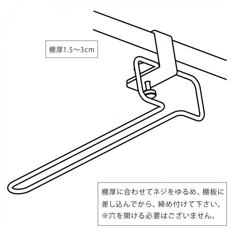 1.5cm〜3cmの棚板に使用できます。