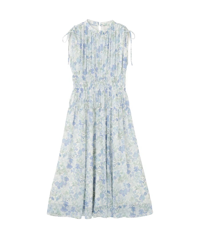 ウエストシャーリングが高見えする華やかな花柄ワンピース。幅違いのシャーリングをウエスト高めに施しており、スタイルアップを叶えます。肩リボンでギャザー調節ができ、フレンチスリーブにもノースリーブにもアレンジ可能です◎。