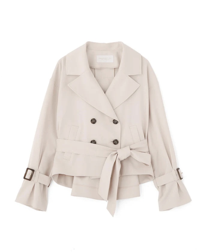 PROPORTION定番のベーシックショートトレンチコート。裾は後ろを長くしたフィッシュテールラインにし、シワになりにくくキレイなシルエットに拘ったデザインです。スカートもパンツも合わせやすく、通勤シーンから休日スタイルまで活躍してくれます♡