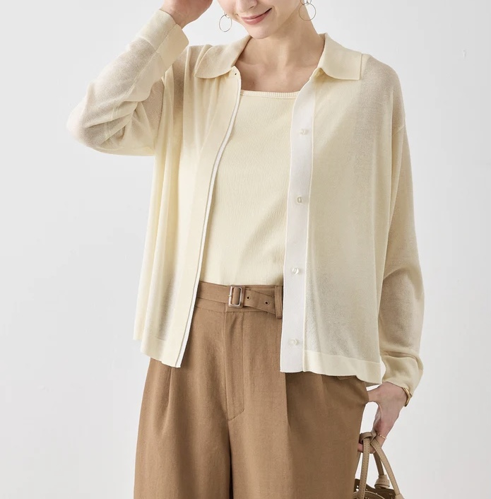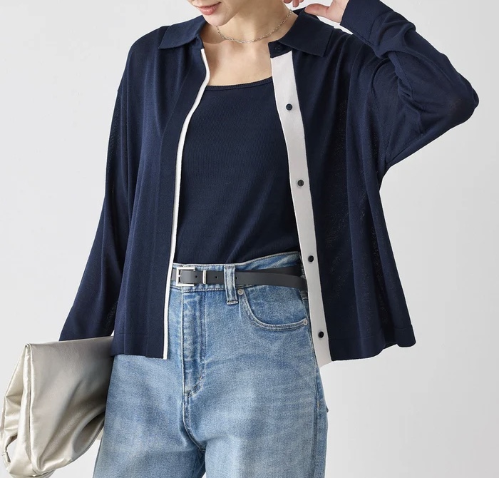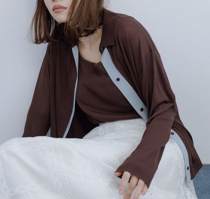 セットのインナーを合わせるだけで、こなれたレイヤードスタイルが完成するカーディガン。