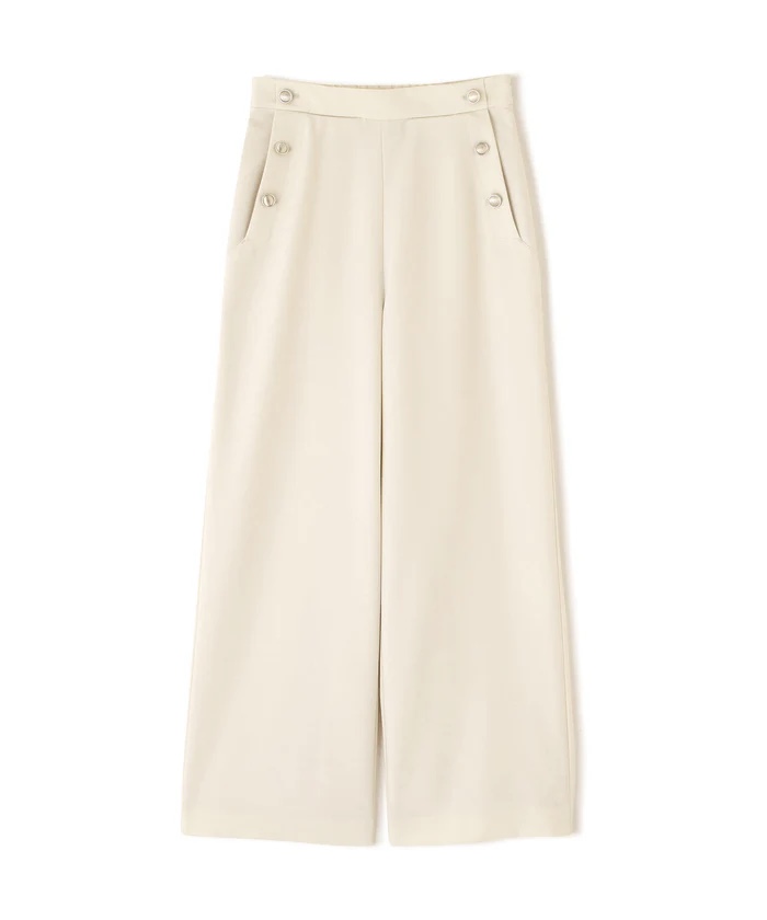 脚に沿って流れる柔らかなドレープが、動くたびにエレガントな表情を生み出すパンツ。トップスをインすると、よりマリンディテールの釦が引き立つコーディネートが叶います♪